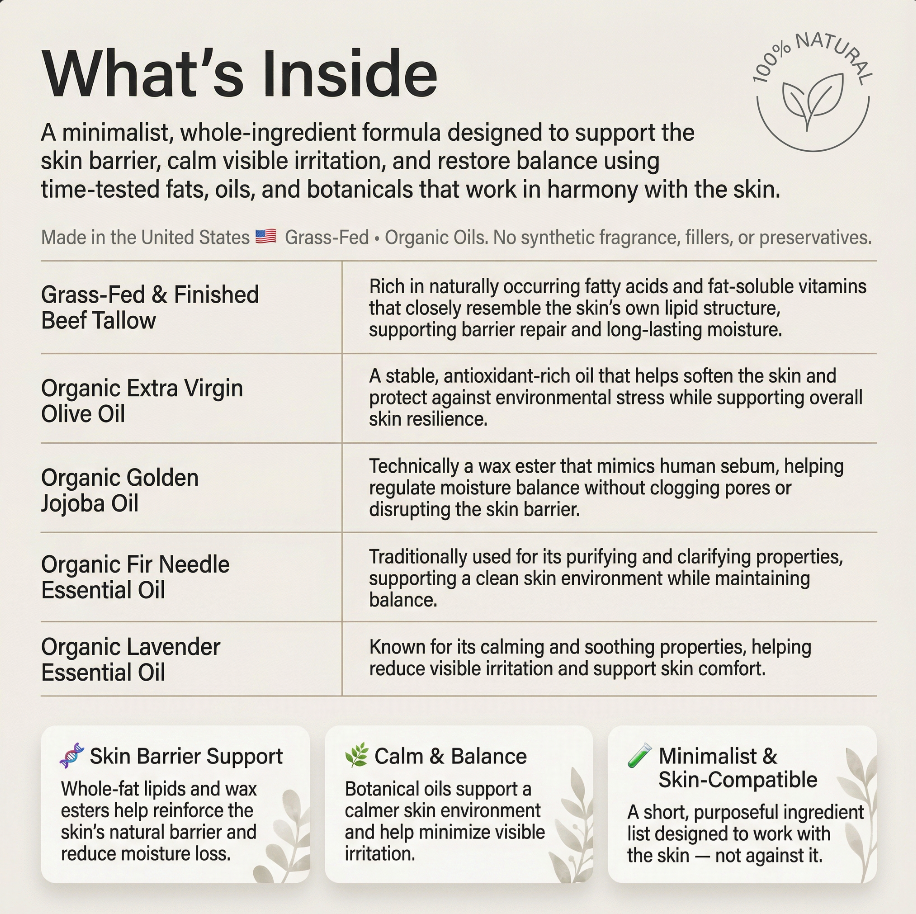 Grass-fed tallow base | Essential oil infused