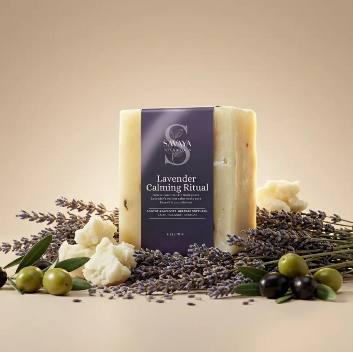 This lavender ritual soap was made for that moment. Real lavender oil and lavender buds provide genuine aromatherapy — not synthetic fragrance. Olive Oil and Shea Butter nourish sensitive skin without ever drying it out. Leave every shower a little calmer than when you walked in.